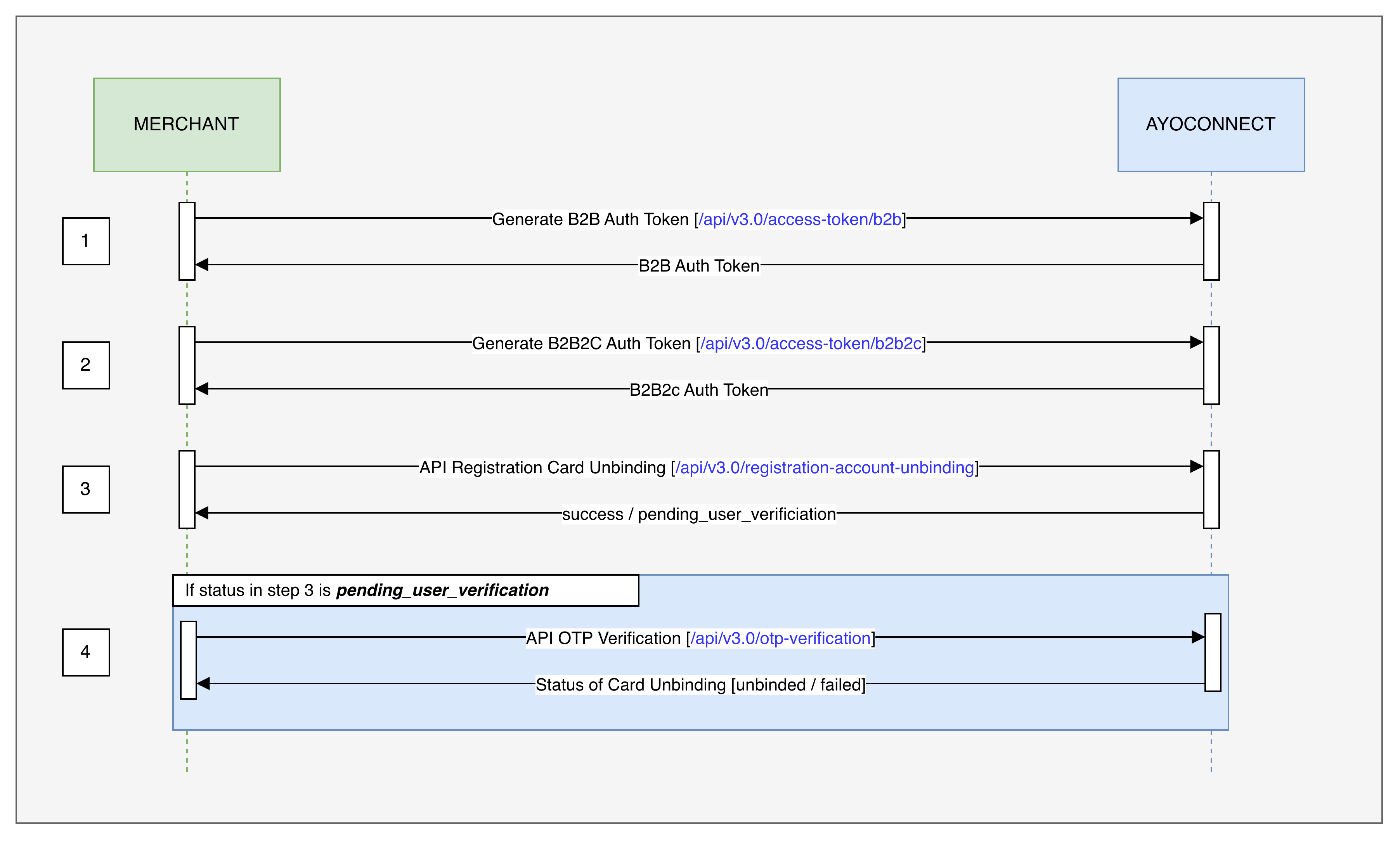 - In case of a Card Unbinding with OTP, a new call to the Verify OTP API will be required.