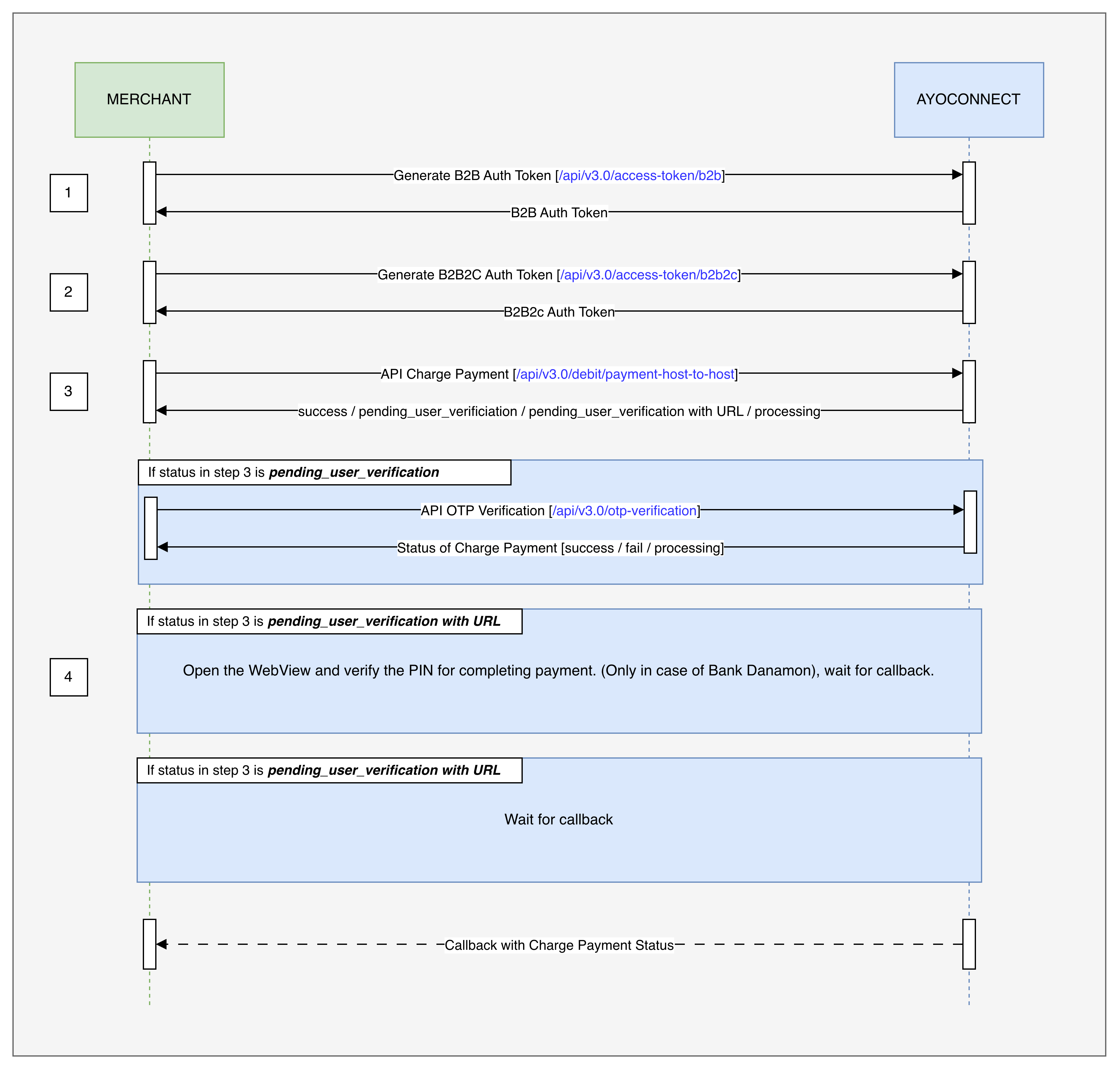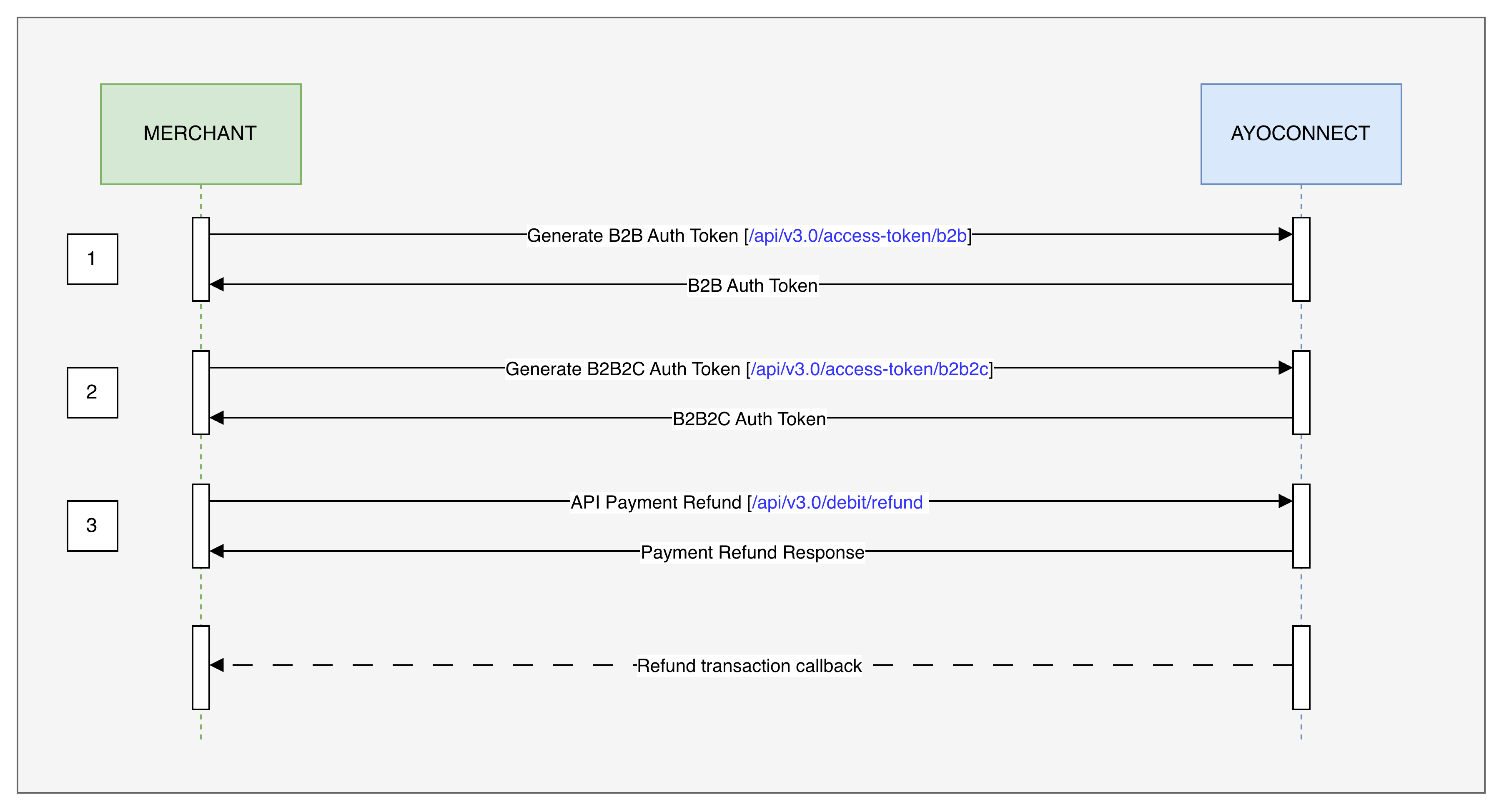 - If the callback isn't received, or you want to reconfirm that the payment has been properly confirmed, you can call the Get the Status of a transaction API with the same referenceNo returned in the Direct Debit Payment API response