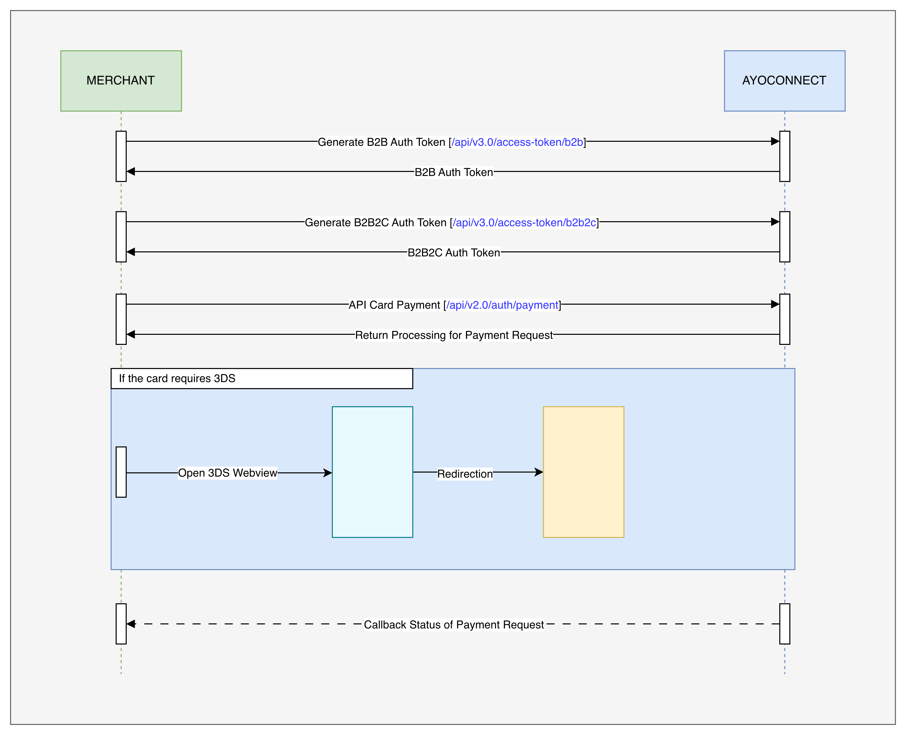There are 2 main flows and 5 supplemental flows in Ayoconnect’s Card Acceptance Solution.
